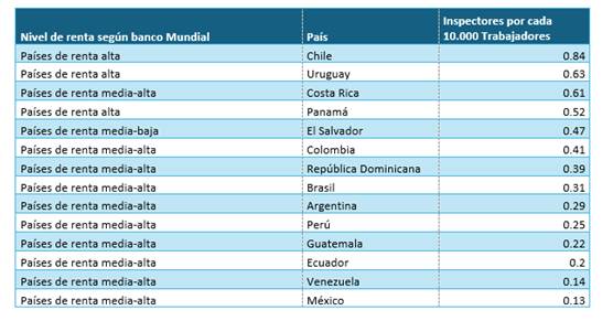 · El país ocupa el tercer lugar en mayor cantidad de inspectores laborales con respecto a la cantidad de personas trabajadoras en América Latina.