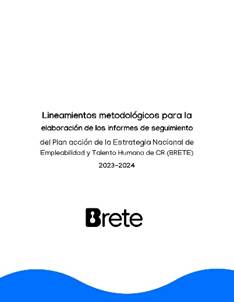 Lineamientos metodológicos para la elaboración de los informes de seguimiento del Plan acción de la Estrategia Nacional de Empleabilidad y Talento Humano de CR (BRETE) 2023-2024 El lineamiento provee los insumos para realizar el seguimiento a las metas programadas, brindando orientación a las instituciones responsables de brindar oficialmente la información cuantitativa y cualitativa correspondiente al cumplimiento de metas anuales, semestrales y de período |