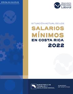 Situación actual de los salarios mínimos en Costa Rica, 2022 En este informe se realiza una caracterización de la dinámica de los salarios mínimos en Costa Rica, con el fin de brindar insumos para la toma de decisiones y la posible definición de acciones en este campo. Se presenta una breve descripción de la población objetivo, las principales características de las personas trabajadoras que perciben menos del salario minimum minimorum, así como el porcentaje de incumplimiento de dicho salario en las diferentes actividades económicas, grupos ocupacionales, empresas según tamaño, regiones de planificación, entre otros. |